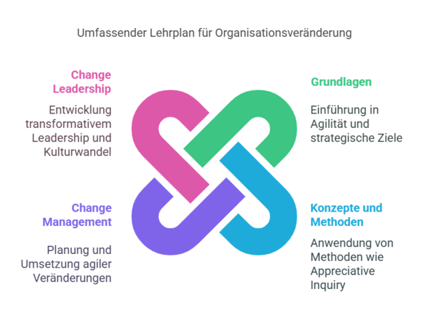 Die Inhalte und Anwendungen richten sich konsequent an einer wirkungsorientierten Entwicklung in Ihrer eigenen Organisation aus. D.h., die Module sind voller Methoden und Tools, die direkt anwendbar sind.